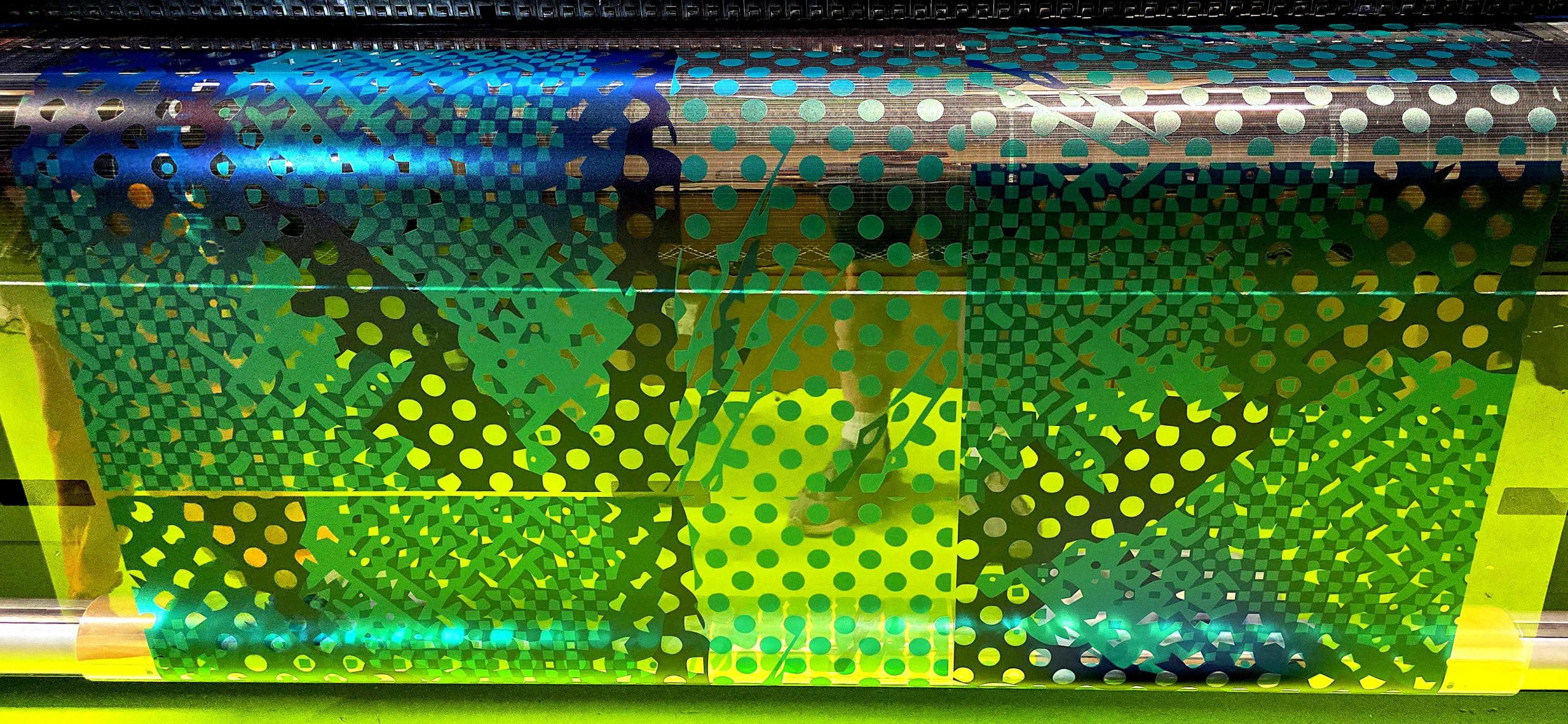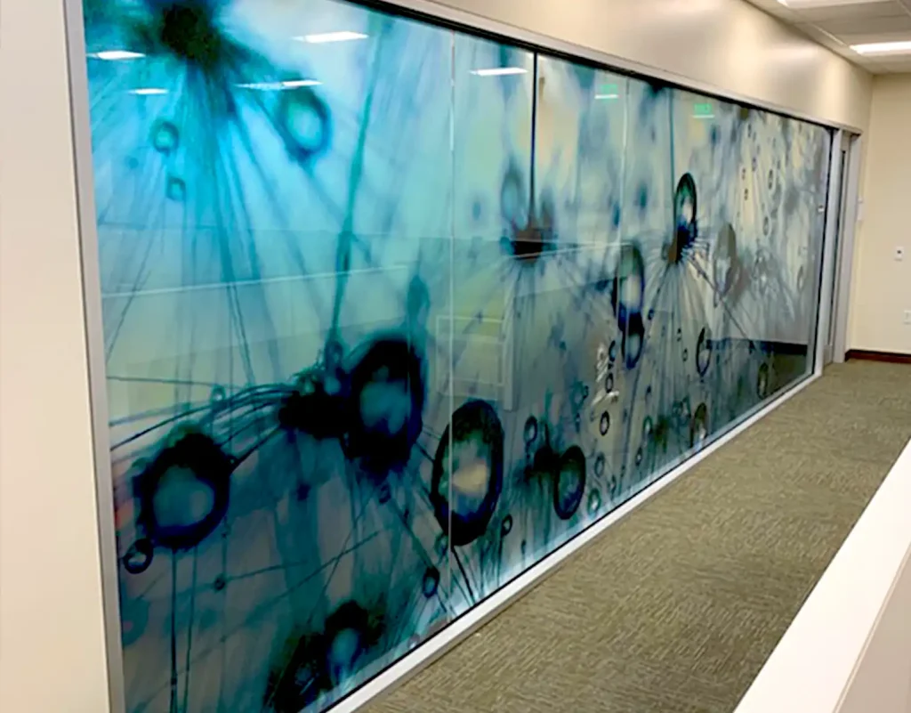 - Custom printed window film for branding, patterns, and full bleed imagery
