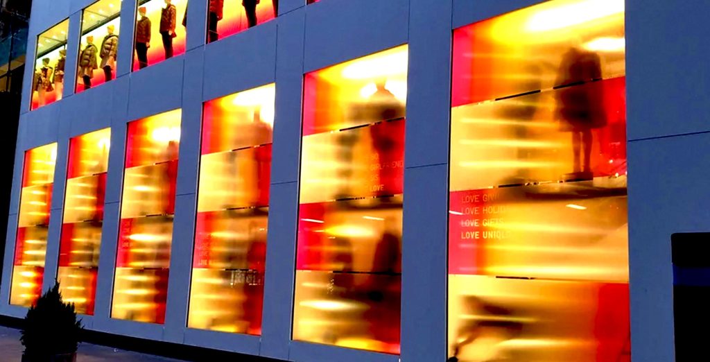 - Perforated one way window film for large exterior campaigns with interior visibility